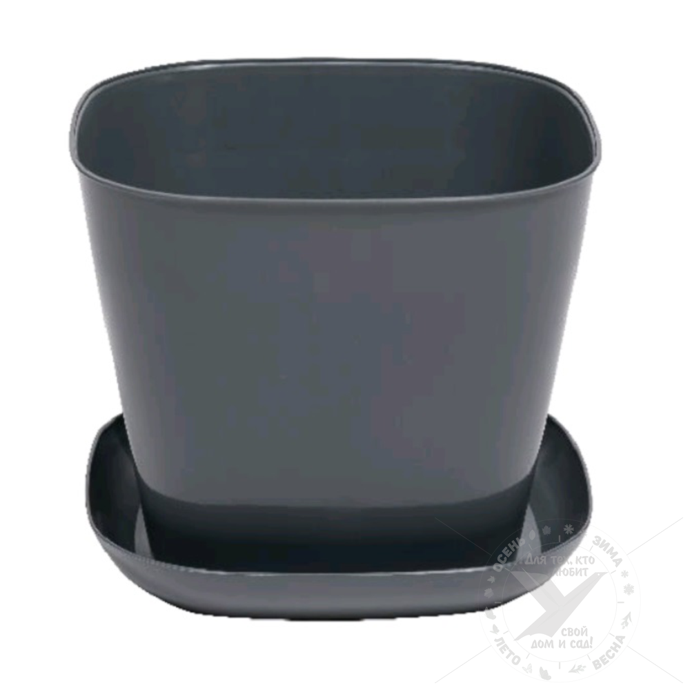 Кашпо квадратное, 1,3 л, серое