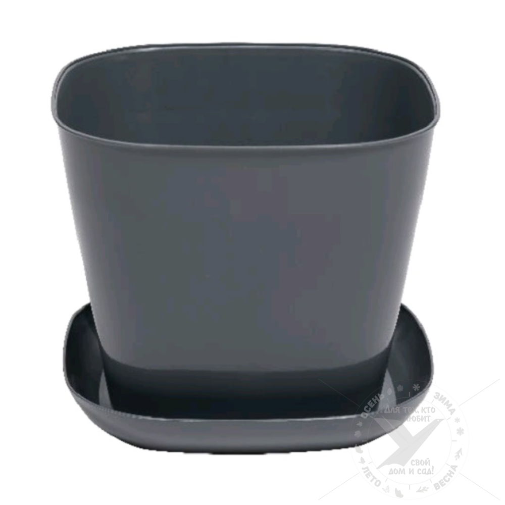 Кашпо квадратное, 3.7 л, серое