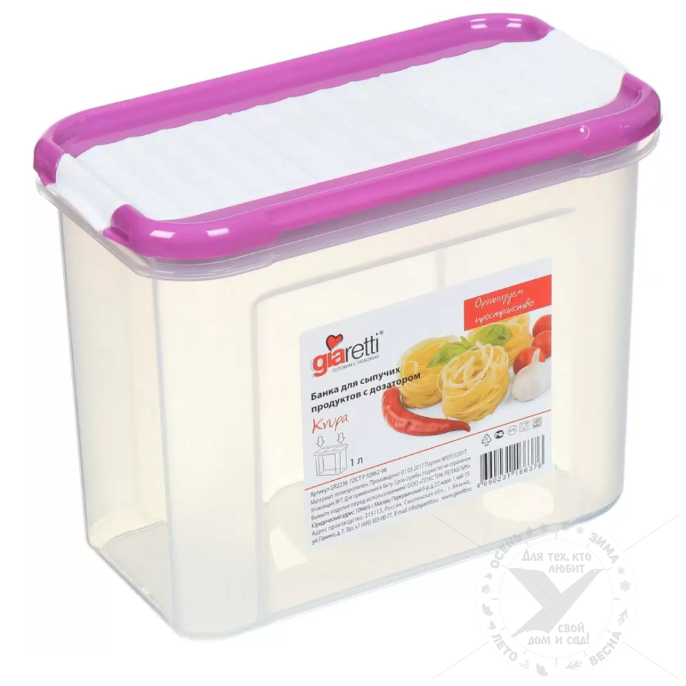 Банка "Krupa", для сыпучих продуктов, с дозатором, 1 л, gr2236