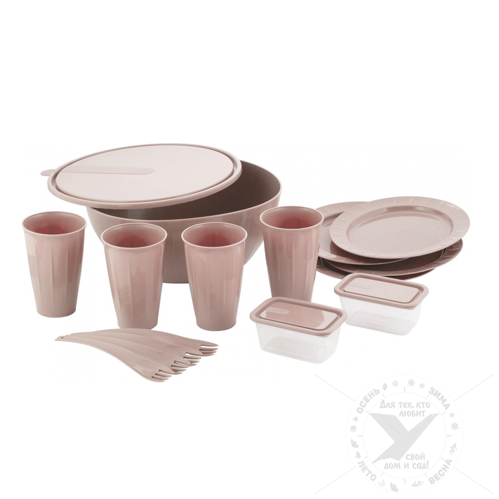 Набор для пикника, латте, 4 персоны, 17 предметов, se180512005