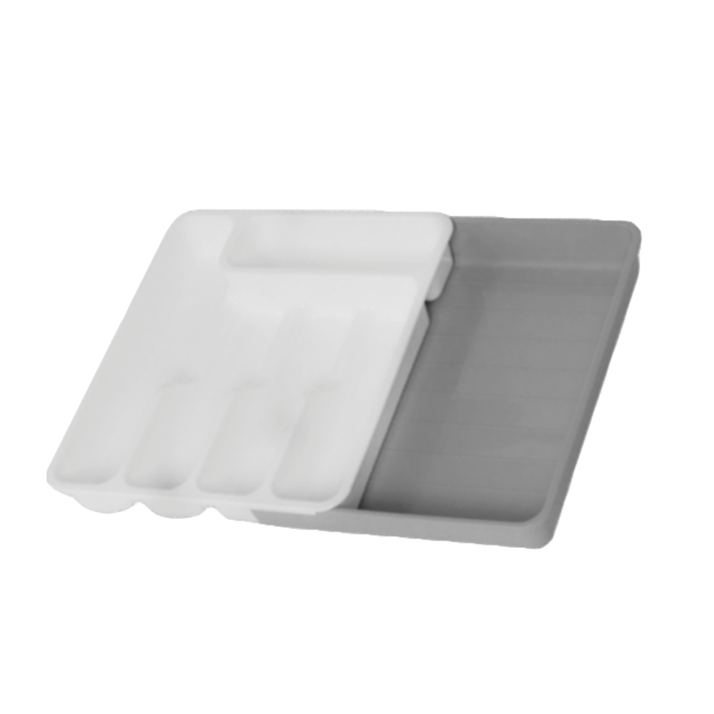 Лоток раздвижной, для столовых приборов, бело-серый, 740618