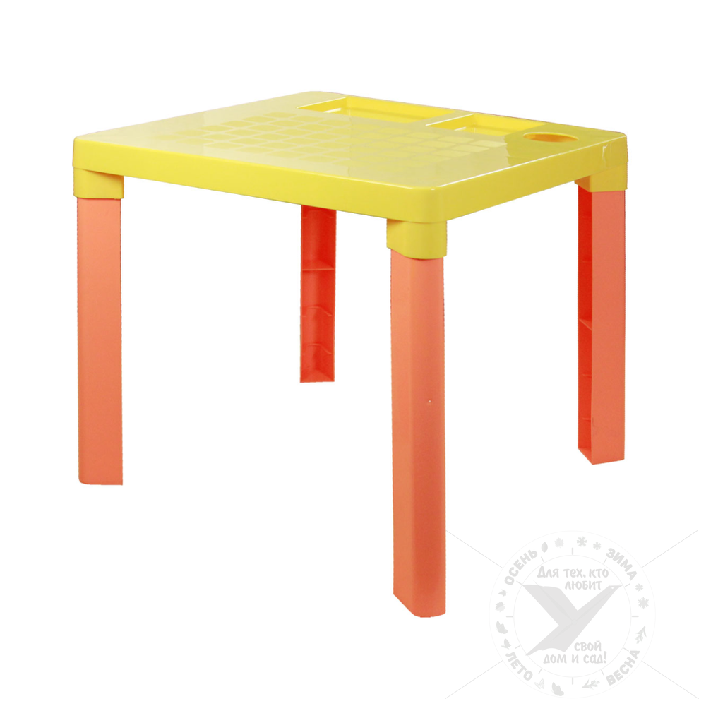 Рисовать и принимать пищу, играть в игры и рассматривать книжки вашему ребенку будет удобно за столиком, произведенным из яркой безопасной пластмассы. Пластиковая мебель мобильна и легко перемещается - ребенок будет постоянно у вас на виду. Стильный однотонный стол органично впишется в современные интерьеры детских комнат и уголко Стол легко отмывается от загрязнений и может использоваться в помещениях, на летних полуоткрытых верандах, террасах, на дачах.