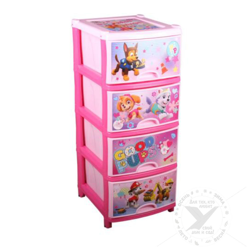 Комод плетенка "Щенячий патруль", для девочек, 4 секции, м6133