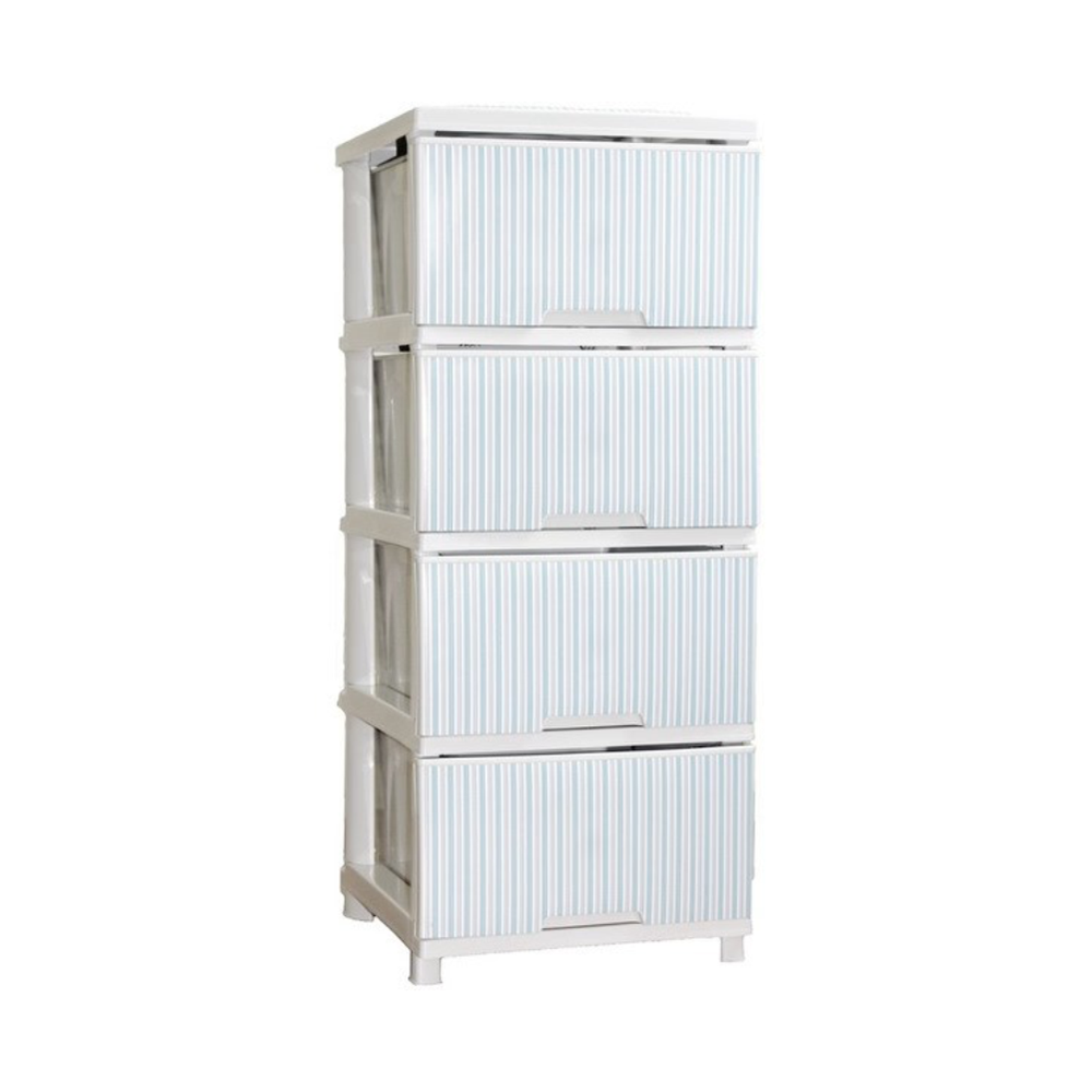 Комод "Флоран", 4 секции, белая роза, пооски голубые, 123093