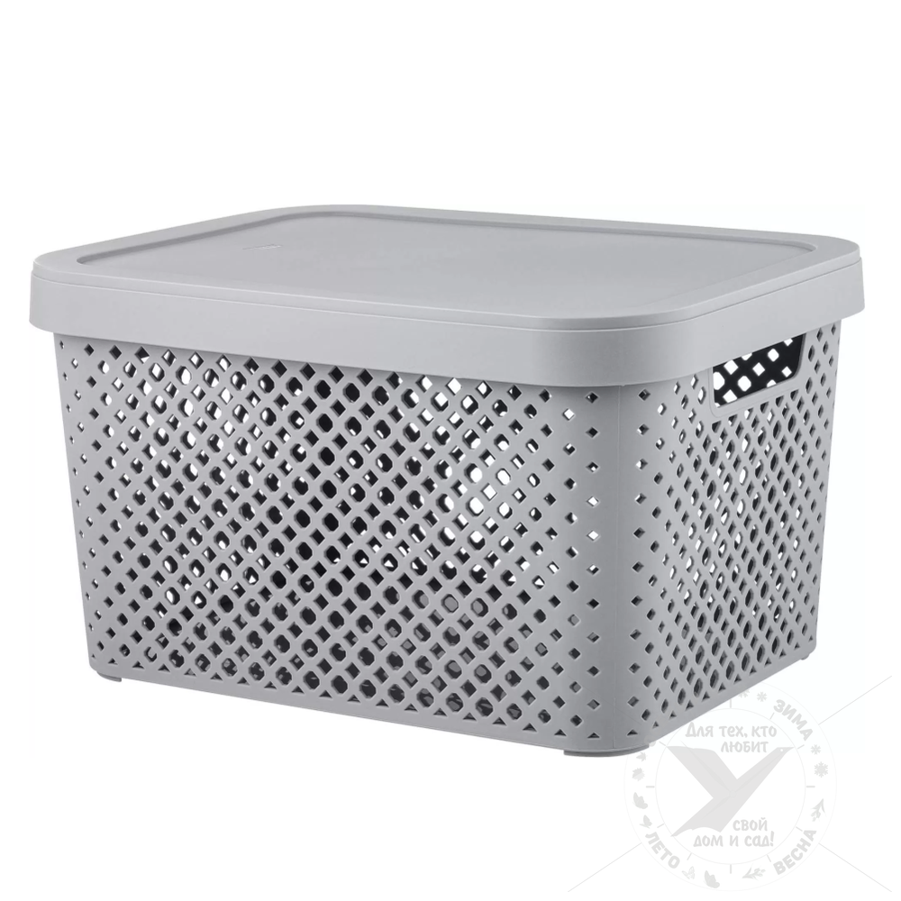Корзина для хранения, с крышкой, 10 л, серый шторм, рт500501025