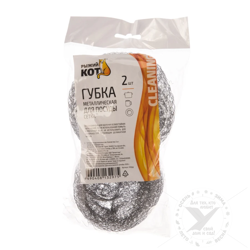 Мочалка металллическая, для посуды, сетка, 2 штуки, 310569